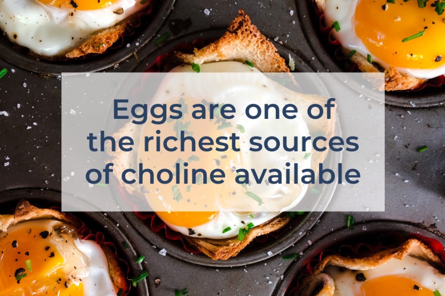 Η χολίνη βρίσκεται κυρίως στα αυγά. Οι έρευνες έδειξαν ότι αν υπάρχει έλλειψη χολίνης κατά τη διάρκεια της εγκυμοσύνης, δεν έχουμε κανονική ανάπτυξη του εγκεφάλου του εμβρύου, με συνέπεια τα βρέφη να γεννιούνται είτε με ατελή μνήμη είτε με μειωμένη ικανότητα μνήμης, χαρακτηριστικό που θα το συνοδεύει για ολόκληρη τη ζωή του.