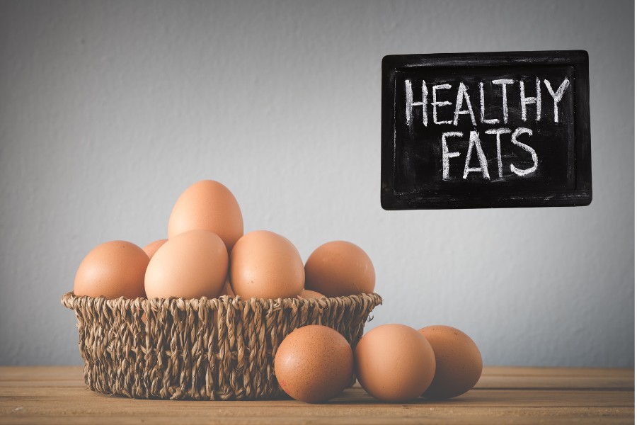 Η περιεκτικότητα σε λίπος των αυγών Είναι πολύ κοντά στις οδηγίες για το περιεχόμενο της διατροφής σε λίπη δηλαδή 1/3 κορεσμένα, 1/3 μονοακόρεστα και 1/3 πολυακόρεστα λιπαρά.